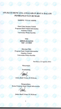 Project development work house has several activities that require planning and time costing each type of job. During this activity has not been a lot of development cost calculation carried out due to lack of technical knowledge on how to plan cost calculations. It makes someone who will build homes, less able to conduct surveillance and the provision of needed resources. As a result, development is hindered and the workmanship can be stopped in the middle. Solutions to address the mater is the application dibuatkannya budget plans in the development of web-based home. The system is built to calculate the cost of workmanship, material requirements and its execution time estimation processing before building the house. This application report provides information in the form of budget plans, material needs, recapitulation, and scheduling execution of construction work. Based on the results of implementation and evaluation has been done, can help the process of planning costs, provision of resources, and supervision of the construction work.