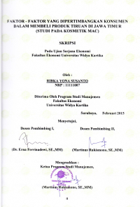 Pada era kini produk produk tiruan sangat banyak beredar di pasaran. Anehnya peminat produk tiruan ini cukup banyak sedangakan kualitas produk tersebut tidak terjamin keamanannya. Hal ini juga terjadi pada industri kosmetik di Indonesia. Rumusan masalah dalam penelitian ini adalah faktor faktor apa yang dipertimbangkan konsumen dalam menggunakan dan membeli kosmetik tiruan dari produk MAC.