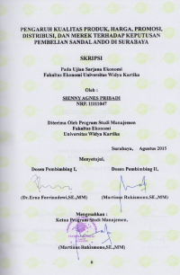 Pengaruh kualitas produk, harga, promosi, distribusi, dan merek terhadap keputusan pembelia sandal Ando di surabaya