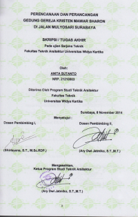 Perencanaan dan perancangan gedung gereja Kristen Mawar Sharon di Jalan Mulyosari